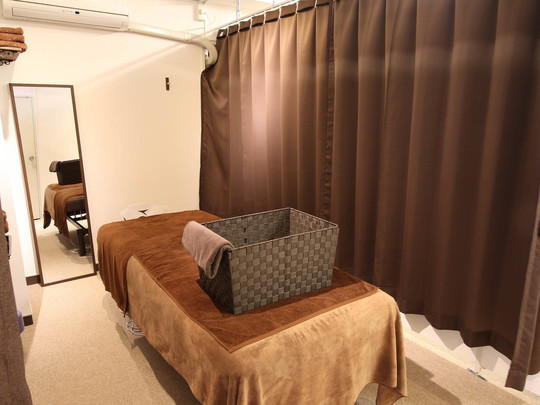 カーテンで仕切られており、周りを気にせず落ち着いた空間で施術を受けていただけます。ホワイトとブラウンを基調したプライベート空間です。また、女性専用のお部屋は個室になっております。お身体が冷えてしまわないように、全ての施術ベッドが温かくなるようにしております。